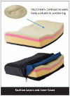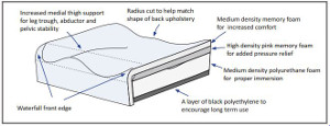 The Prism Supreme Heavy Duty TM Cushion was designed for users weighing up to 500 lbs and requiring high positioning support. The anatomically designed, firm polyurethane layer, with its aggressive leg troughs and abductor contouring provides superior pelvic stability and leg positioning. A base layer of pressure relieving visco-elastic foam under the IT's (Ischial Tuberosity), allows for excellent immersion for bony prominences.
