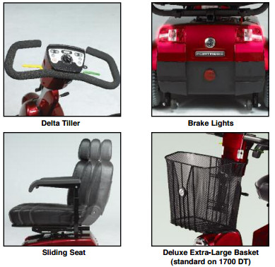 For over 25 years, Fortress scooters have carried with them, a legacy of superior durability, reliability and comfort. This legacy continues with the Fortress 1700 Series. Its exciting look is both elegant and solid and its new range of features sets the standard for luxury and value in a mid-sized scooter. The Fortress 1700 Series continues to offer a perfect balance of indoor maneuverability and outdoor performance and is now available in a choice of two drive systems. So whether it is a quick trip down the street or a busy day of places to go and people to see, the Fortress 1700 Series will get you there in comfort and style.