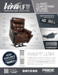 Nothing else tilts like the VivaLift! Ultra. Ultra offers a superior, restorative relaxation experience with even more position possibilities. True to its name, VivaLift! Ultra has three different heating pads in the shoulders, lumbar and seat. Plus, the all-new air bladder massage system applies gentle pressure to your lower back, with three intensity settings to soothe your aches away. Of course, the Ultra features the discreet hideaway cup holder and wireless charging station. These favorite convenience features are what Pride customers have grown to love. VivaLift! Ultra comes in three sizes: small, medium and large. It also comes in four standard fabric colors: Capriccio cappucino, dove, slate and smoke.