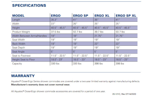 The Aquatec Ocean Ergo Shower and Commode Chair with Collection Pan, Lid and Pan Support Guide Rail, features ergonomic, height-adjustable swing-away armrests and footrests and angle-adjustable flip-up textured footplates with heel loops for security. Footrest height, seat height and footplate angle easily adjustable without tools for personalized fit. Innovative ergonomic seat encourages a more upright position for enhanced comfort and independence. Easily maneuvered in small spaces as well as allowing for a better fit over standard toilets for independent personal care.